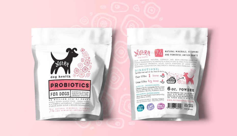 Lấy ví dụ như thức ăn sinh học cho chó Nutra. Khi mọi người nghĩ đến “vui vẻ”, họ không nghĩ tới thức ăn sinh học cho chó. Nhưng những người chủ thường muốn thú cưng của họ sống lâu và khoẻ mạnh. Và bằng cách khiến cho việc cho chó của họ ăn thức ăn sinh học trở nên vui vẻ, thì thiết kế của Martis Lupus đã thúc đẩy các người chủ quan tâm đến sức khoẻ của chó hơn. Những hình dáng hơi méo màu hồng bên cạnh hình chú chó đã khiến hình ảnh của Nutra nổi bật hơn, và khiến nó trở nên vui vẻ.