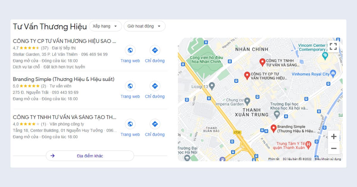 Nếu bạn là một thương hiệu có địa điểm kinh doanh (cửa hàng, đại ký) hoặc trụ sở rõ ràng. Rất có thể khách hàng tiềm năng sẽ tìm kiếm bạn qua bản đồ (Google Maps) hoặc Google Search.