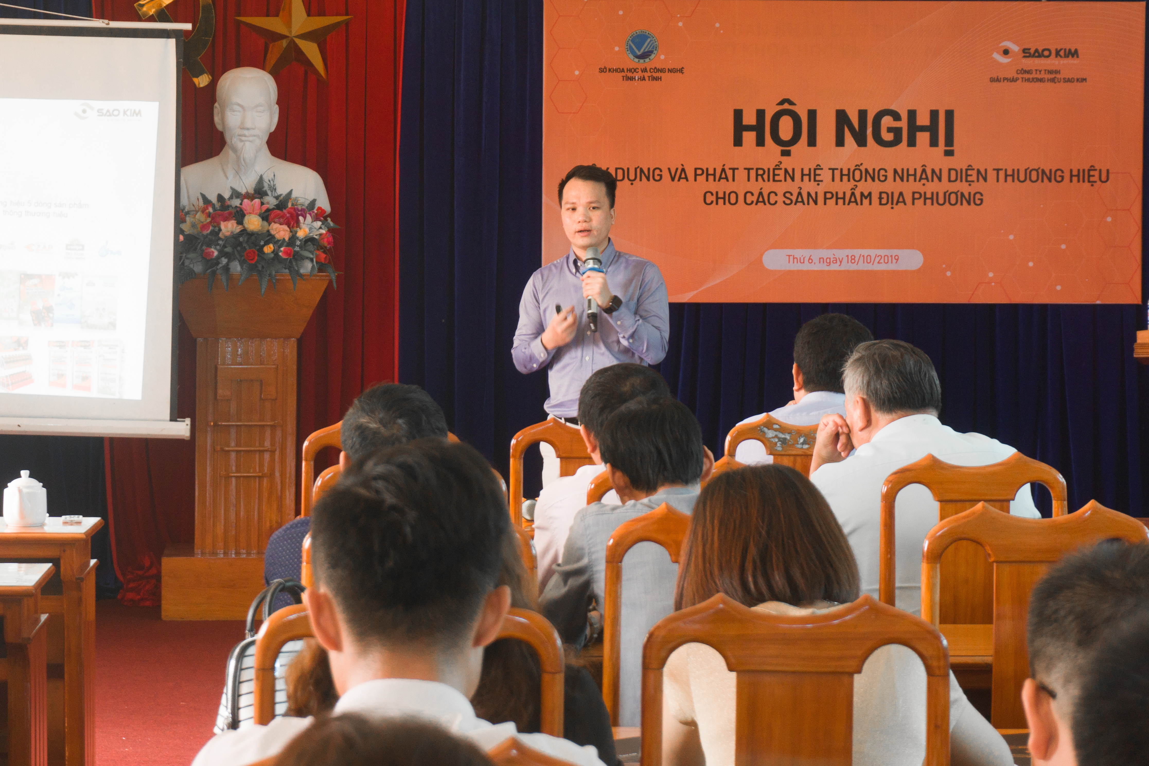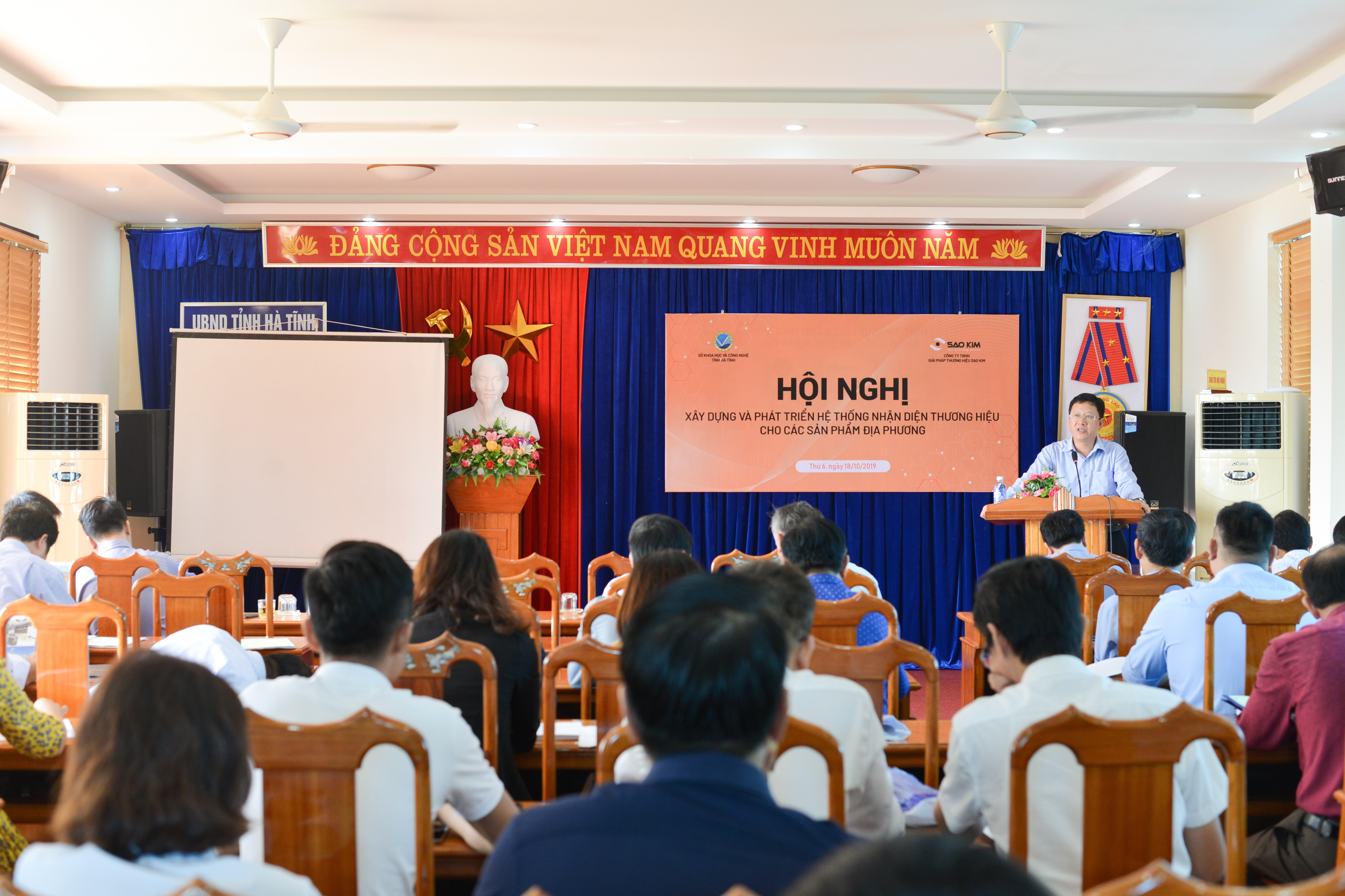 Ngày 18/10/2019, Sao Kim Branding phối hợp cùng Sở Khoa học và Công nghệ tổ chức Hội nghị Tập huấn: “Xây dựng và phát triển hệ thống nhận diện thương hiệu cho các sản phẩm địa phương tỉnh Hà Tĩnh”. Tham gia Hội nghị có đại diện của các Sở, Ban ngành liên quan, hơn 100 doanh nghiệp lớn nhỏ, các huyện, thành phố, hợp tác xã sản xuất kinh doanh trên địa bàn tỉnh.